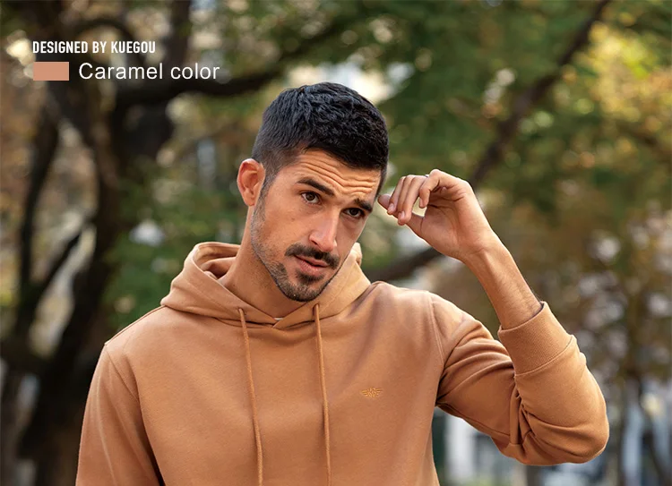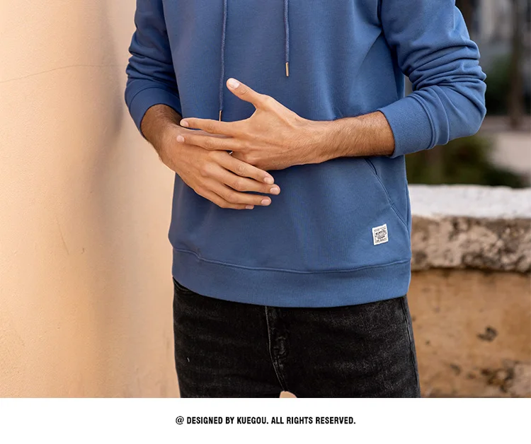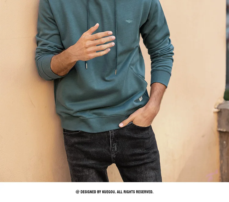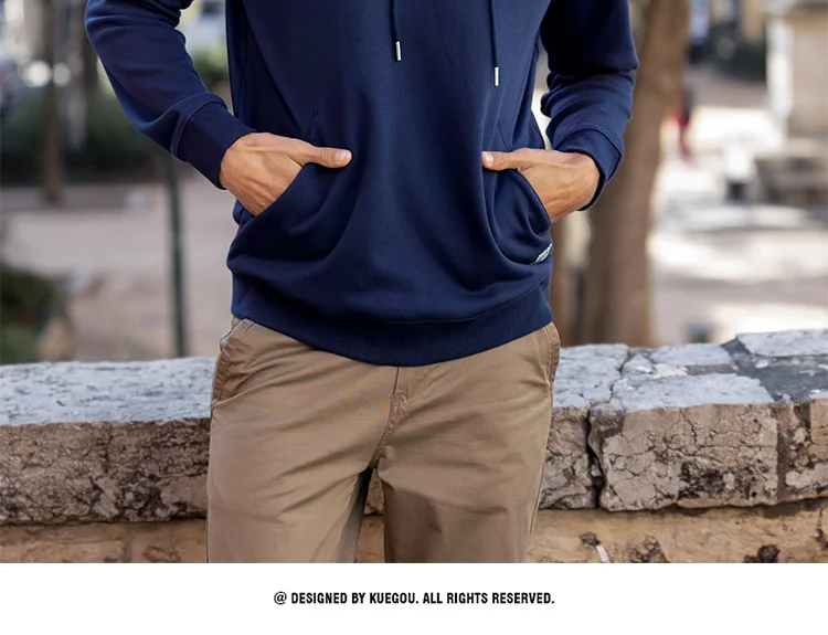 Мужская хлопковая толстовка с капюшоном KUEGOU, черная толстовка с ...