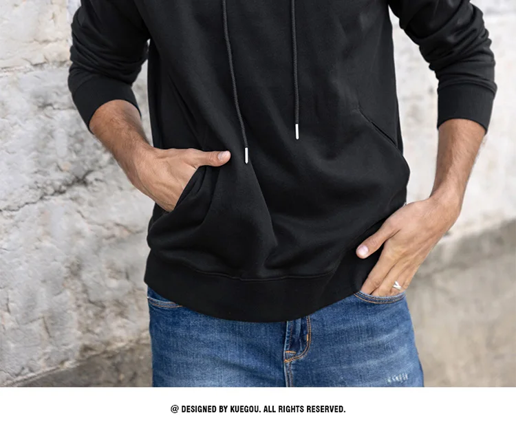 Мужская толстовка с капюшоном KUEGOU, черная толстовка с капюшоном,...