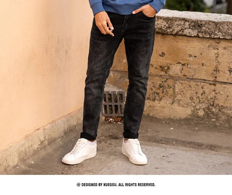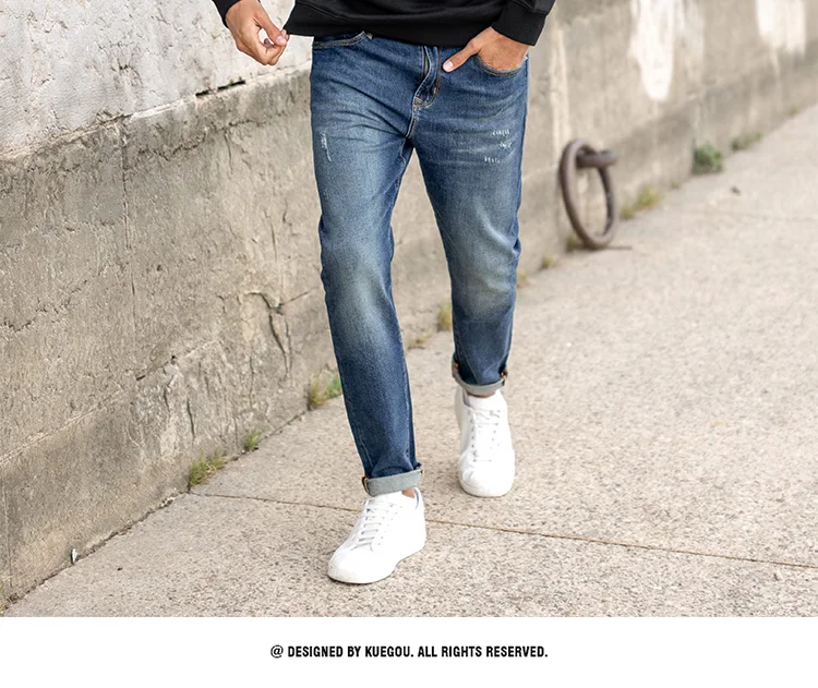KUEGOU хлопчатобумажная одежда мужские рубашки стильное джинсовое п...