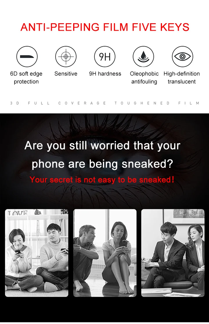 Фильтр конфиденциальности Закаленное стекло пленка антишпионский за...