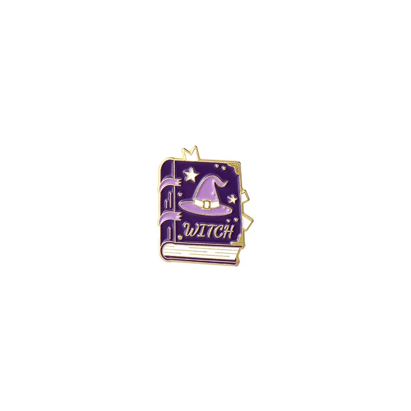 Эмалированные булавки с ведьмой, Волшебная Шляпа, фиолетовые кристаллы, заклинание, книга, луна, звезда, кот, волшебник, броши, металлические значки для ведьмов, ювелирные изделия на Хэллоуин
