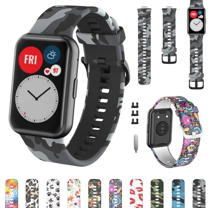Ремешок Камуфляжный для Huawei Watch Fit, силиконовый браслет для смарт-часов, с принтом, двухцветный браслет с инструментом, 22 мм
