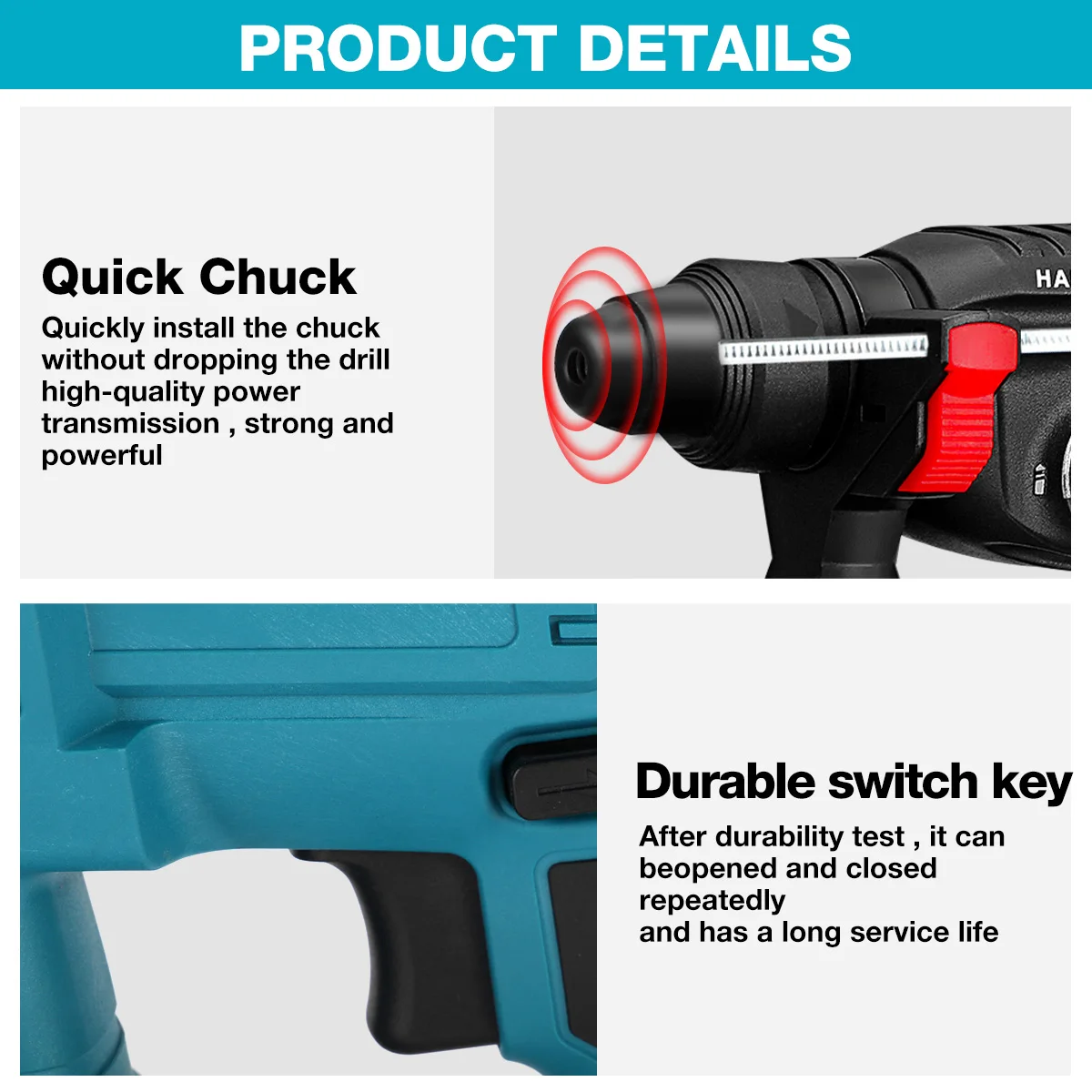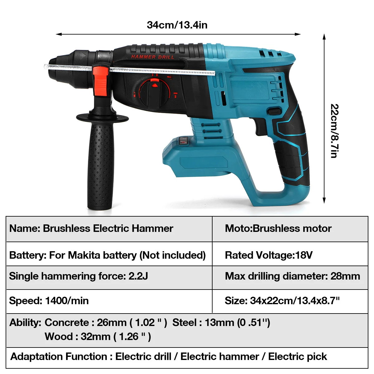 Электрическая бесщеточная Аккумуляторная дрель-перфоратор 18 в, 4 функции, перезаряжаемый Ударный Молоток 28 мм для аккумулятора Makita 18 в