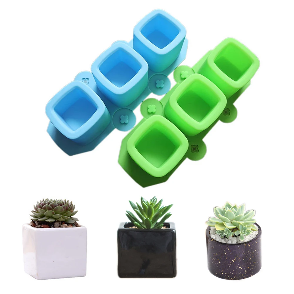 Квадратная силиконовая форма для цветочного горшка с 3 полостями, б...