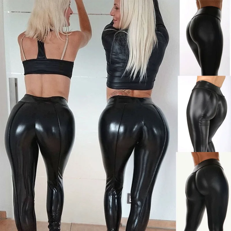 Женские сексуальные брюки из искусственной кожи, черные брюки с высокой талией, тренировочные брюки с эффектом пуш-ап