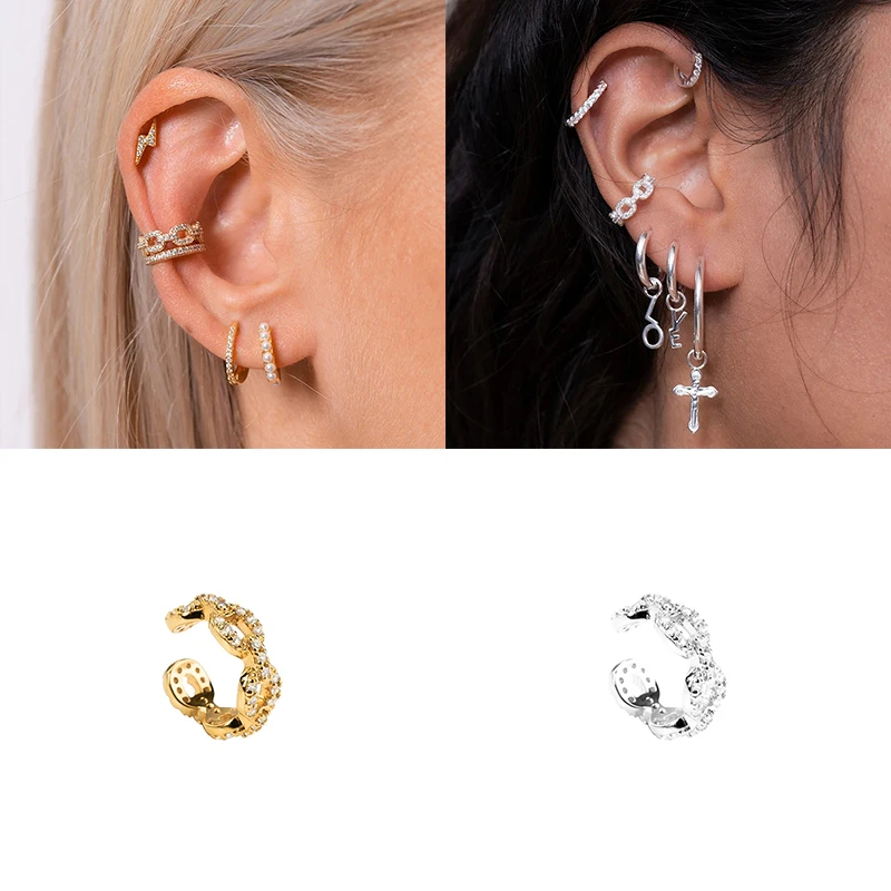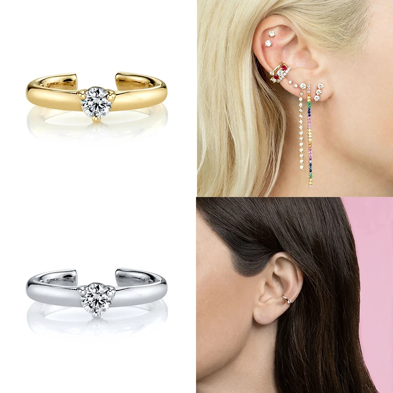 CANNER 1 шт. серьги-каффы с кристаллами CZ в форме C клипсы для уше...