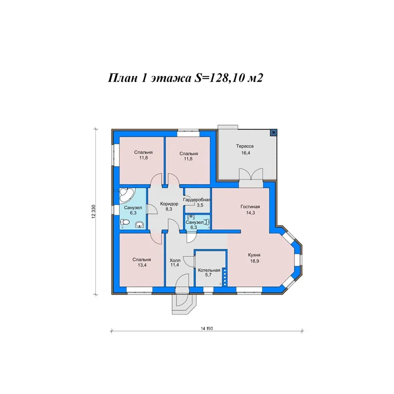Проект жилого дома SD-proekt 11-0003 ( 123,9 м2, 12,33*12,33 м, керамический блок 440 мм, облицовочный кирпич)