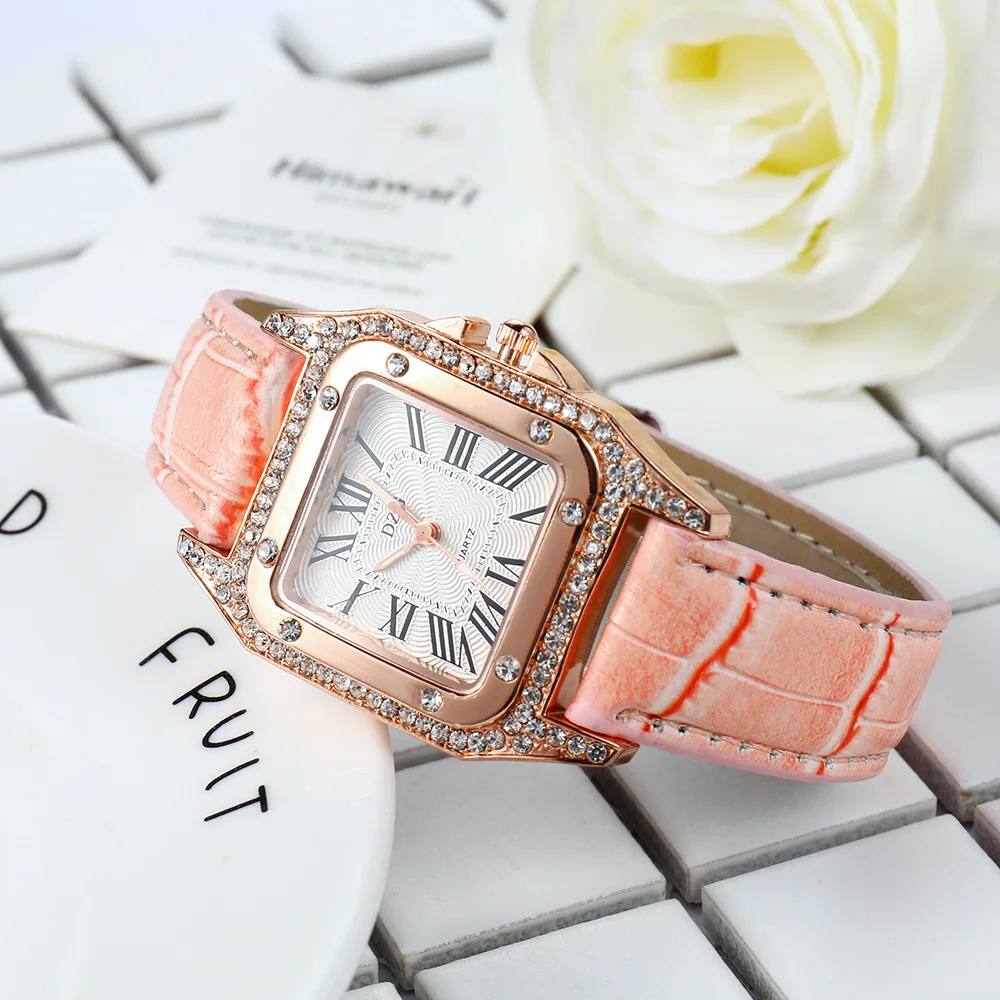 Dzg бренд 2021 Новое кольцо Бриллиантовая карта маленькие квадратные часы Звездные бриллианты модные женские ремни часы кварцевые часы