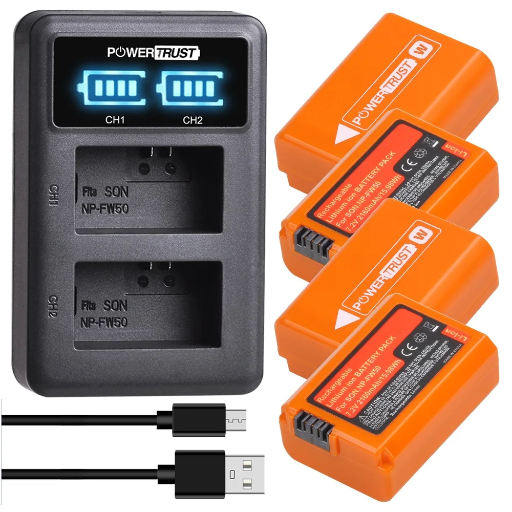 Комплект зарядного устройства NP-FW50, сменные батареи 2160 мАч для...