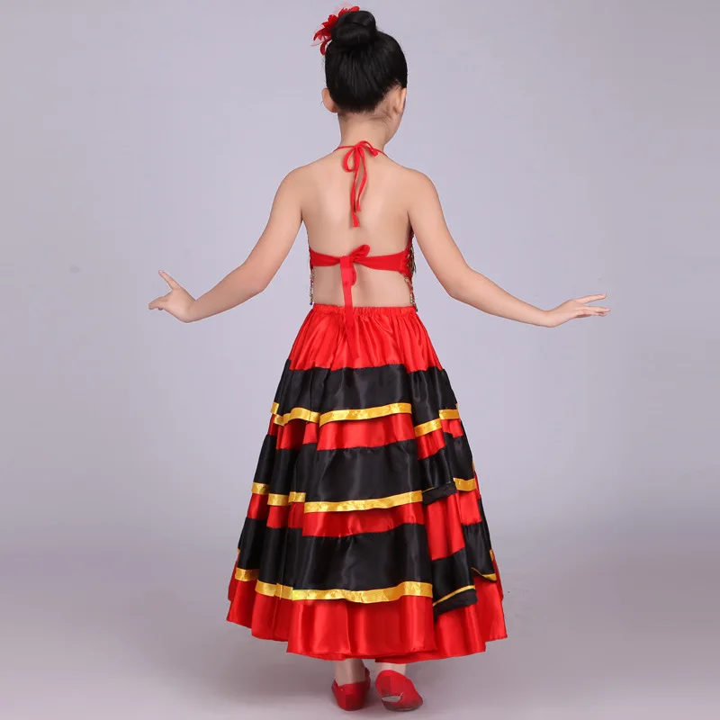 Танцевальное платье для девочек, испанская Цыганская юбка фламенко,...