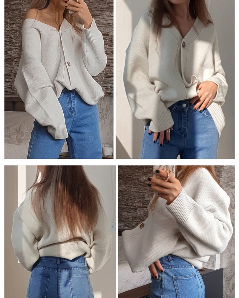 Женский свитер с V-образным вырезом, в стиле оверсайз