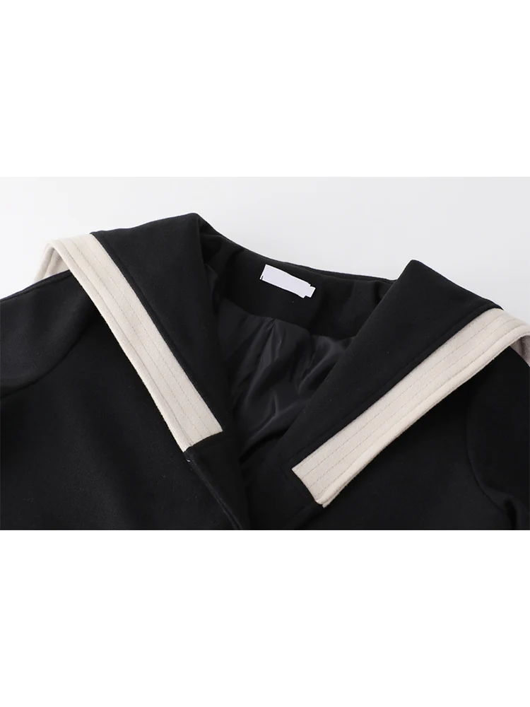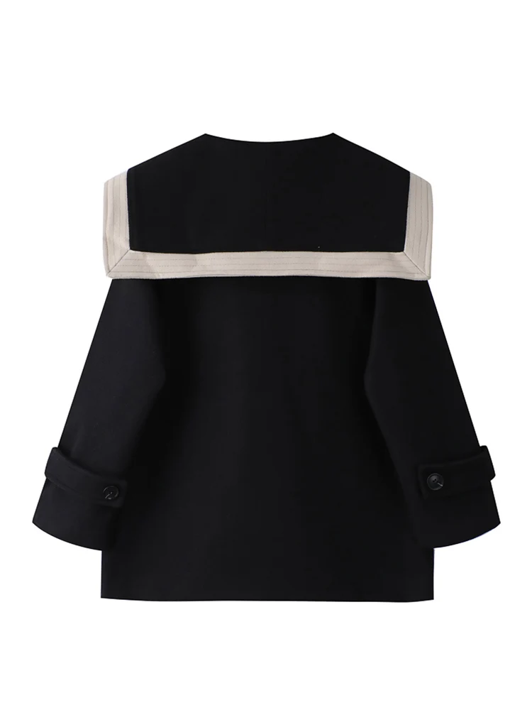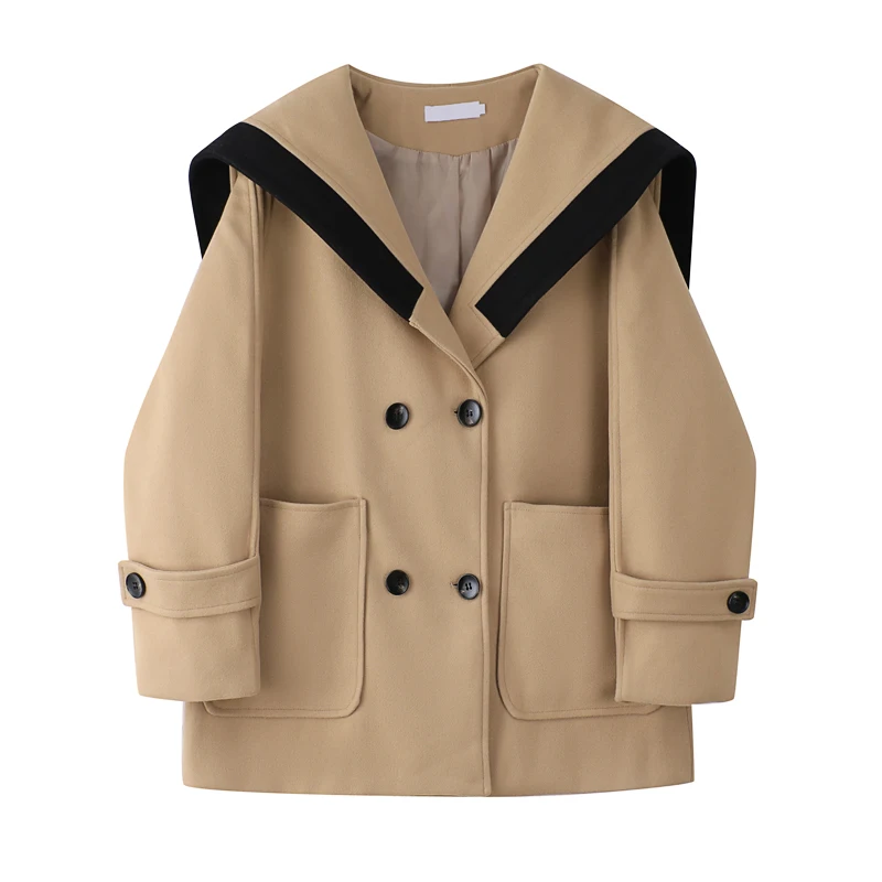 Женское шерстяное пальто, корейское винтажное теплое пальто с матросским воротником и длинными рукавами, свободная верхняя одежда в стиле преппи с карманами, Осень-зима 2021