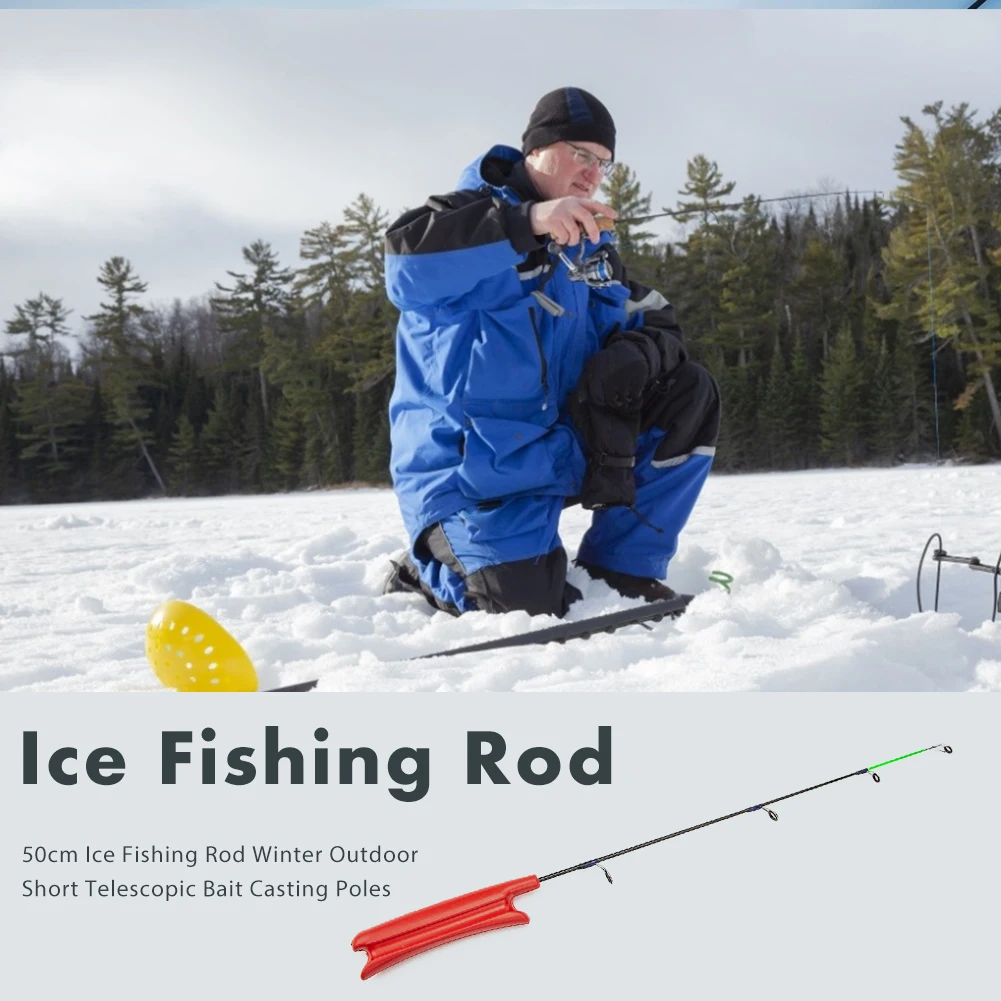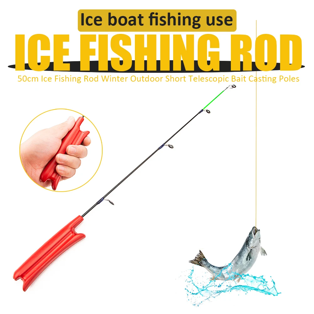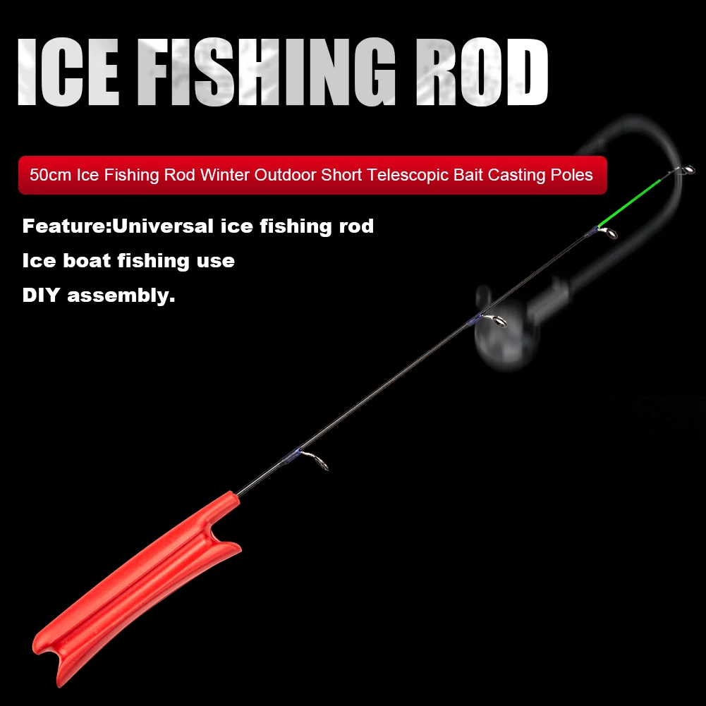 Удочка для зимней подледной рыбалки, короткая телескопическая приманка, кастинговое удилище, рыболовные аксессуары ледовый катер, рыболовные снасти, оборудование 50 см