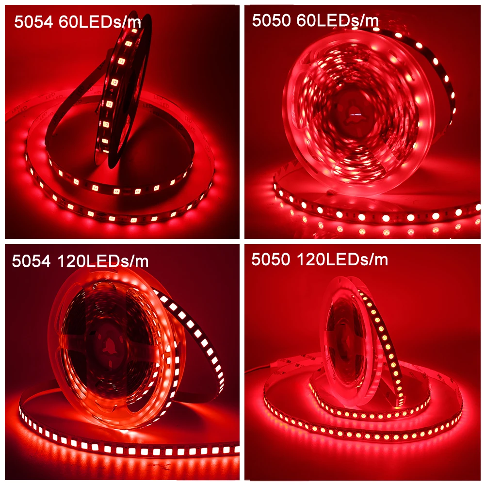5054 120 светодиодов/м: 10 мм ширина печатной платы, 10-12 Вт/м, 18-22LM/LLED