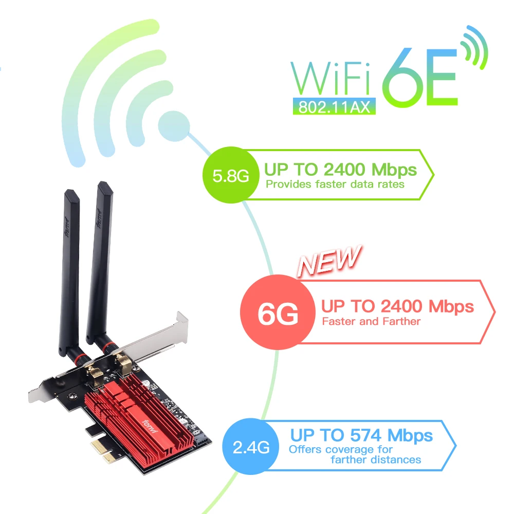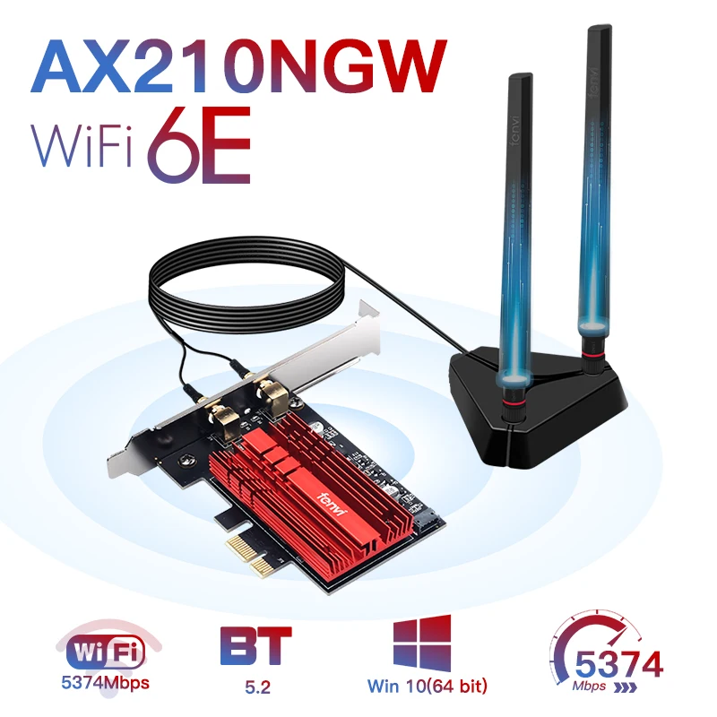 Беспроводной адаптер fenvi WiFi 6E Intel AX210 RGB PCIe, Bluetooth 5,2, трехдиапазонная сетевая карта 2,4G6 ГГц 802.11AX Win 10 для рабочего стола