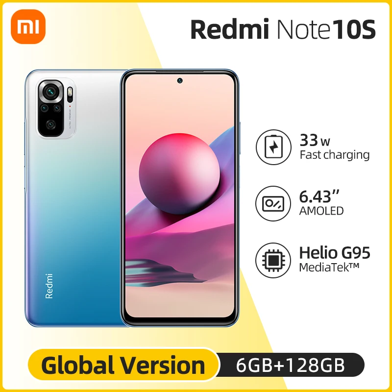 Смартфон Xiaomi Redmi Note 10S, NFC, 6,43 дюйма, AMOLED, 5000 мАч, Helio G95, 33 Вт, быстрая зарядка
