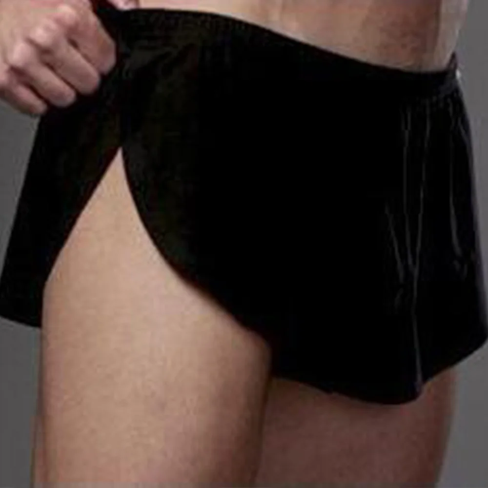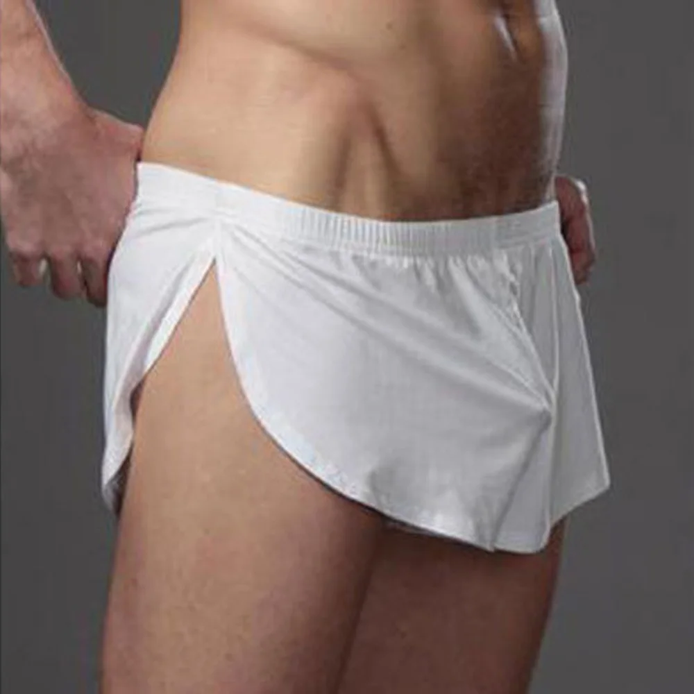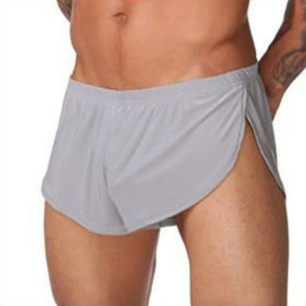 Трусы-боксеры мужские свободные, пикантное нижнее белье, шорты с Боковым Разрезом, Повседневные Удобные, домашняя одежда для сна