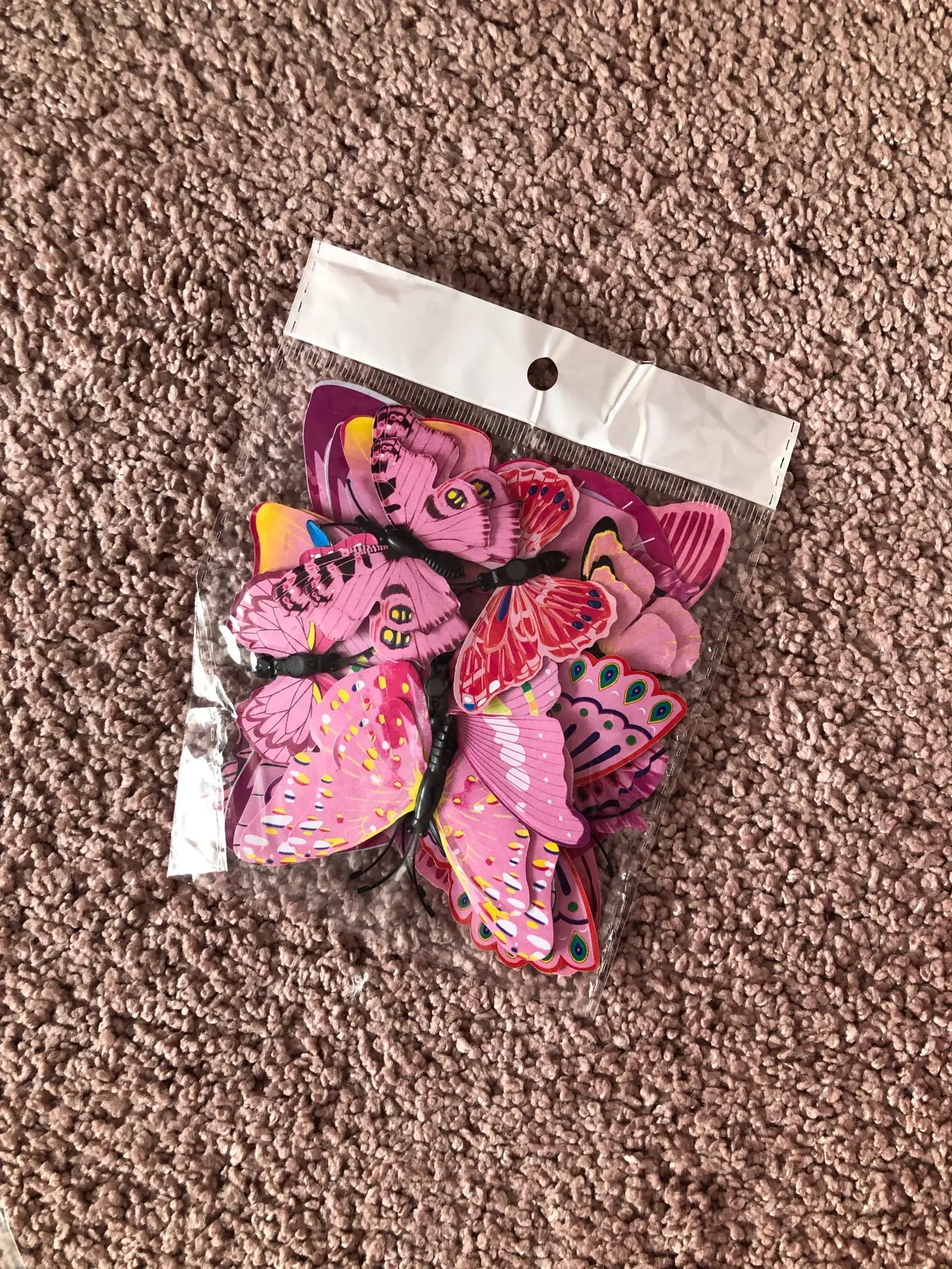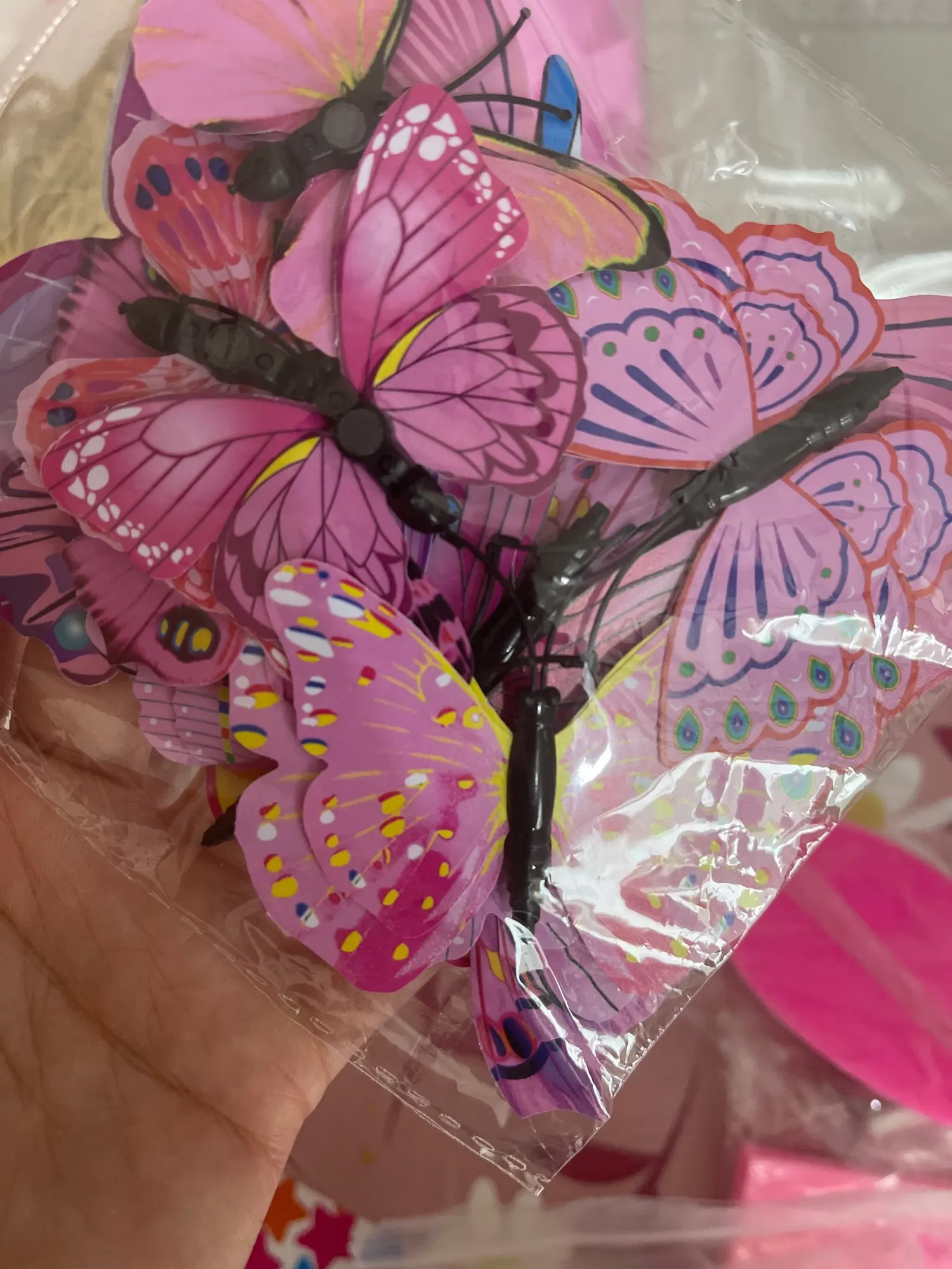 Очень приятный розовый 12 бабочек различных размеров и различных оттенков. .. Понравилось много полностью рекомендую продукт и продавцом.