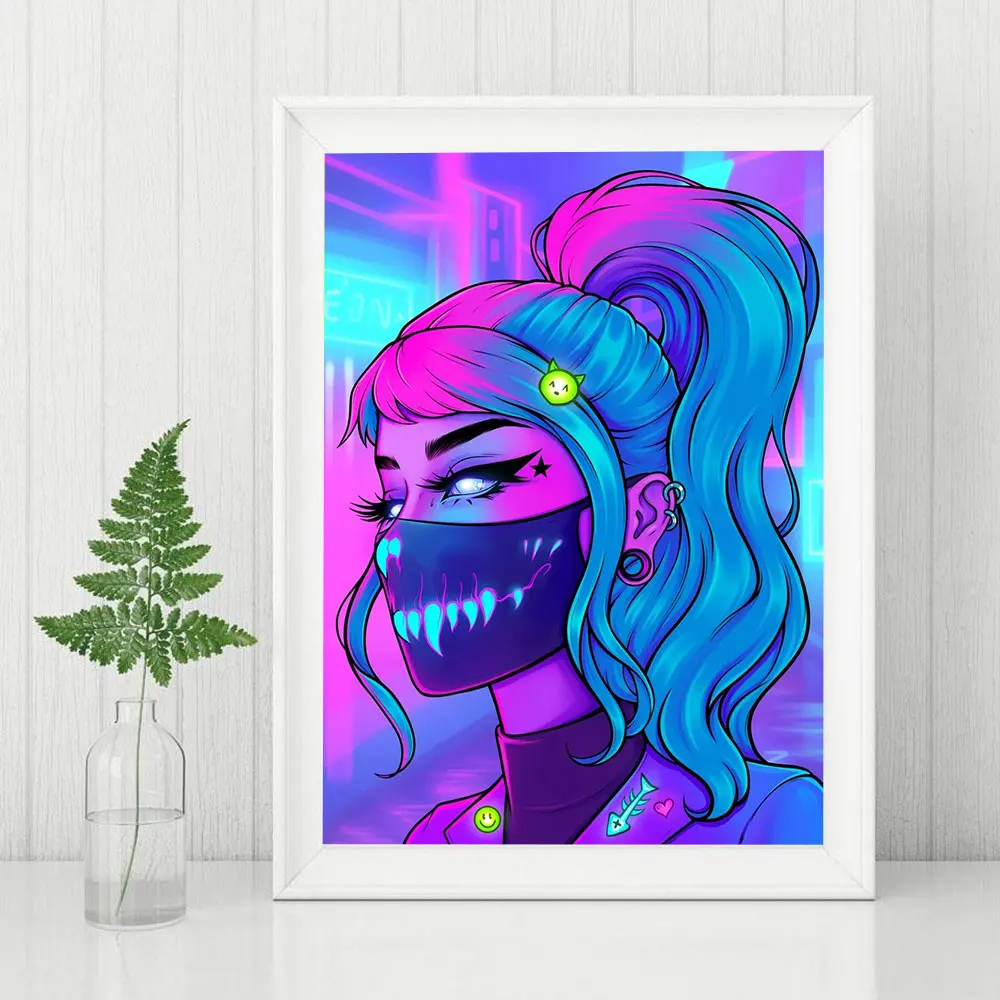 5D DIY алмазная живопись, живопись зубами, губами, улица, граффити,...