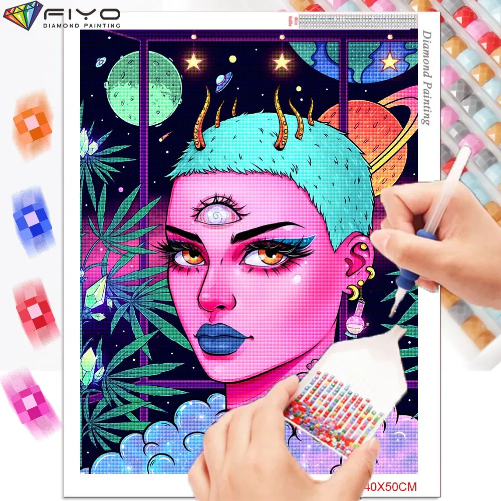Набор для алмазной вышивки девочка FIYO 5D, полноразмернаякруглая в...