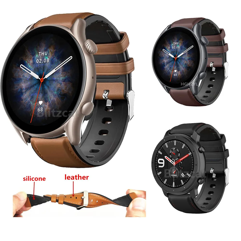 Ремешок из кожи и силикона для Amazfit GTR 47 мм 42 ммAMAZFIT Pace ...