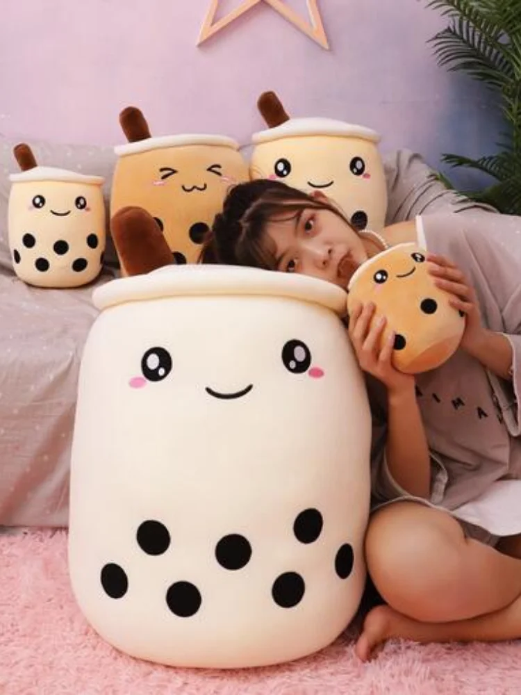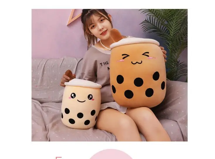 Милая плюшевая набивная мягкая розовая клубника, молочный чай, плюшевая игрушка Boba, чайная чашка, пузырьковая чайная подушка, подушка, подарок для детей