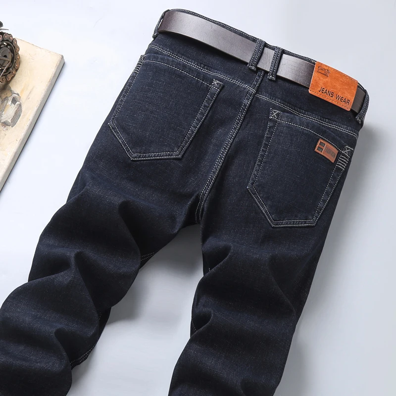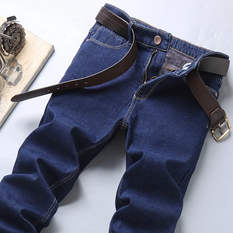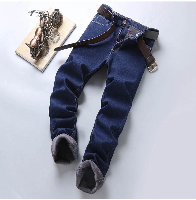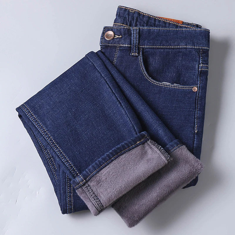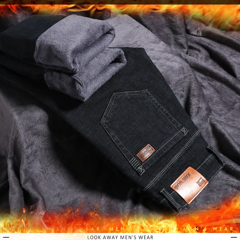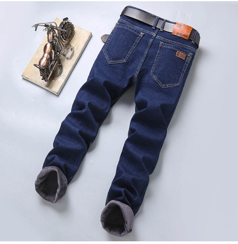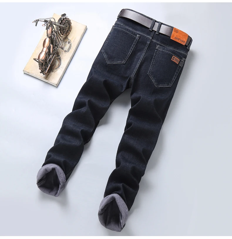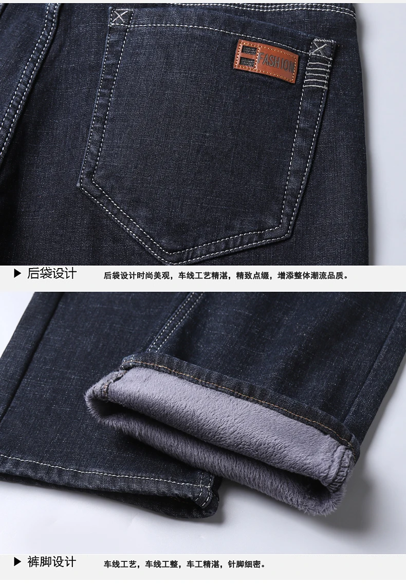 Мужские повседневные джинсы, теплые флисовые хлопковые брендовые облегающие зимние брюки из денима, прямые брюки, Стрейчевые джинсы для мужчин, 28-40, 2022