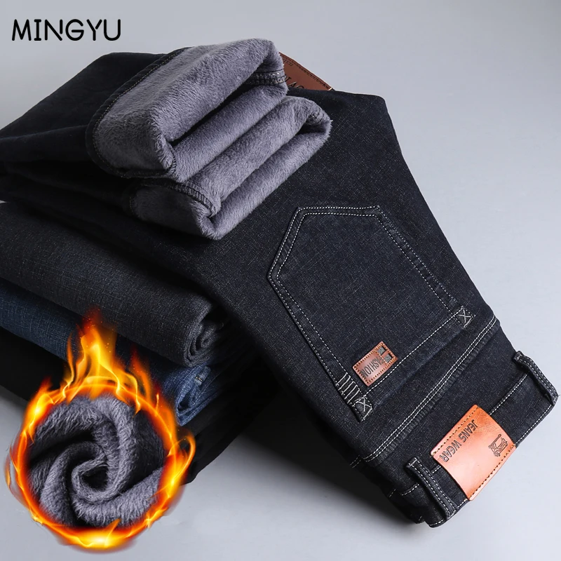 Брендовая одежда Mingyu, зимние мужские теплые флисовые джинсы, муж...