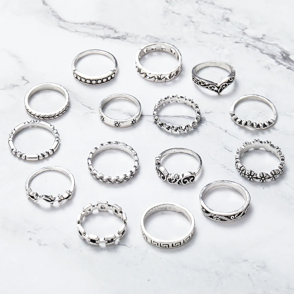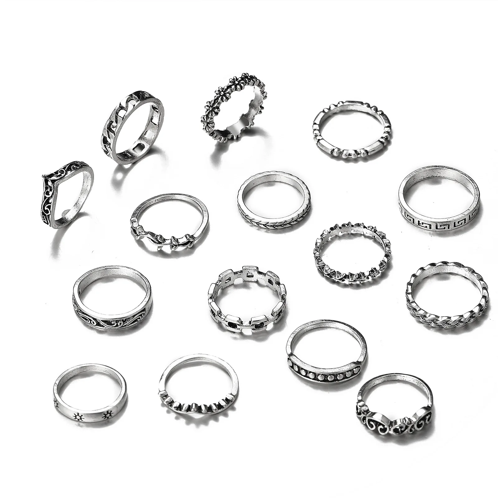Кольцо Delysia King в стиле ретро, набор из 15 колец в богемном стиле с цветком
