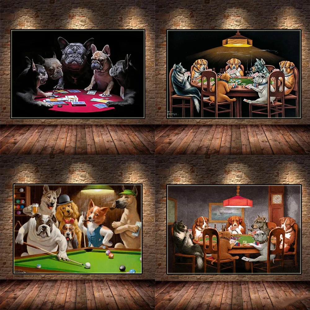 Плакаты с игральными картами для собак, бульдог, Горилла, животные, картины на холсте, современные принты, Настенная картина для гостиной, украшение для дома