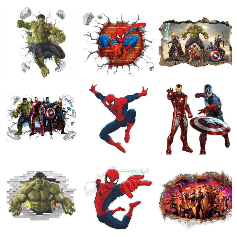 3D обои Халк Человек-паук, наклейка для детской комнаты, самоклеящаяся домашняя Настенная Декорация в спальню мальчика, виниловые наклейки, Мстители, фреска