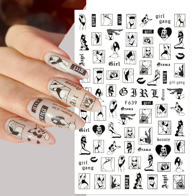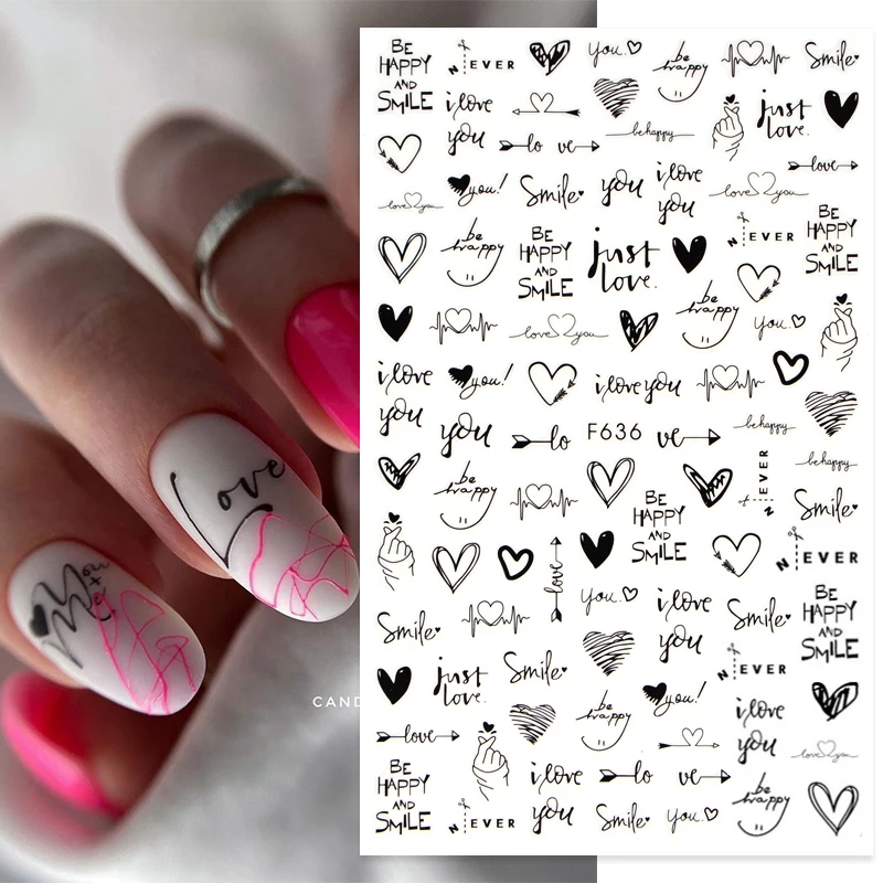 наклейки на ногти, Наклейка для ногтей с сердечком и любовью, черно-белая английская буква, наклейки для лица для ногтей, День святого Валентина, украшение для дизайна ногтей, маникюр, слайдеры для ногтей