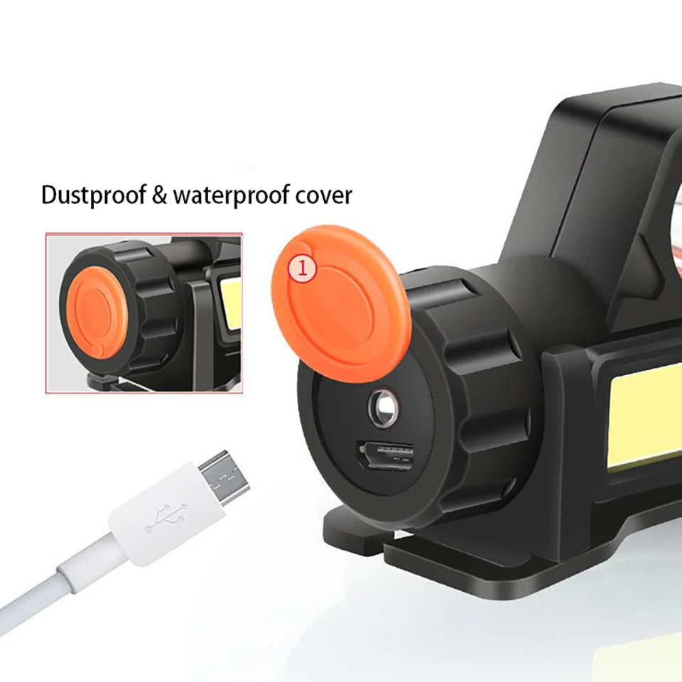 Спецификация:Материал: АБС-пластикМодель светодиодный: 1 * XPE + 1 * COBЛюмен: 180лм (COB), 500лм (Q5)Цвет изделия: черныйСветильник Цвет: белыйРежим освещения: 2 режимаАккумулятор:Встроенный аккумуляторТип переключателя: независимый пресс-переключательФонаря ламповый патрон Размер: 8,5 см x 2,5 см