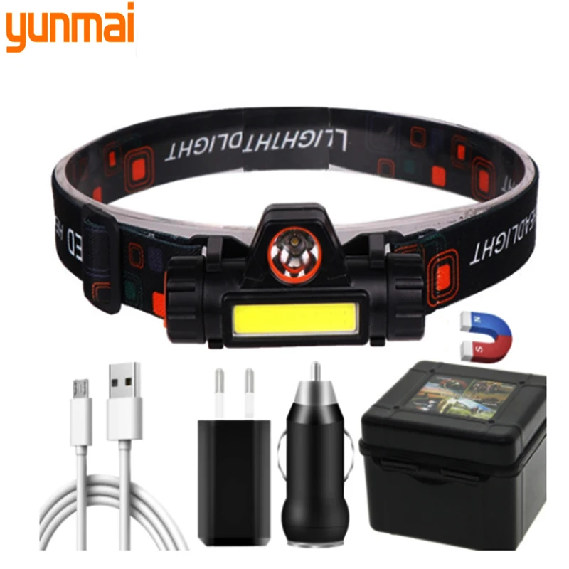 Высококачественный датчик со встроенной батареей 18650 Q5 светодиодный налобный фонарь COB светильник магнитом светильник налобный фонарь лампа налобный фонарь