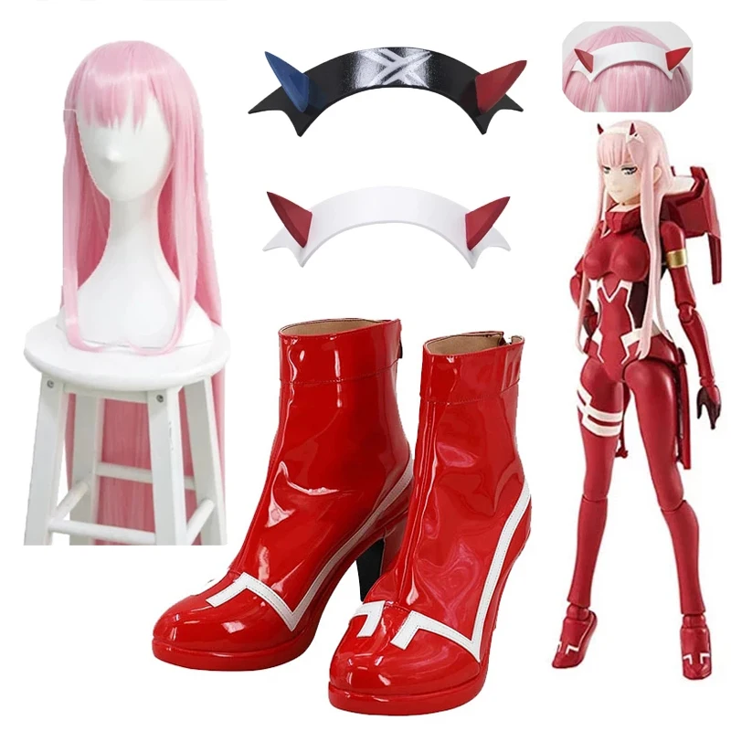 Парик Аниме дорогой в франксе, Zero Two 02, обувь для косплея, консоль, обувь для вождения, головной убор, аксессуары для Хэллоуина