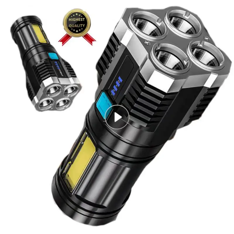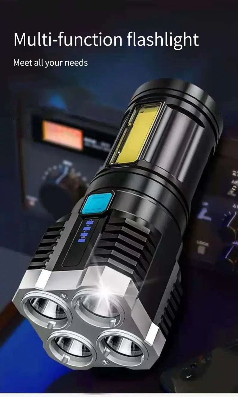 Суперъяркая яркая вспышка с 4 головками, сильный светодиодный светильник с USB, светильник дальнего действия, уличный портативный многофункциональный фонарик, тактический светильник