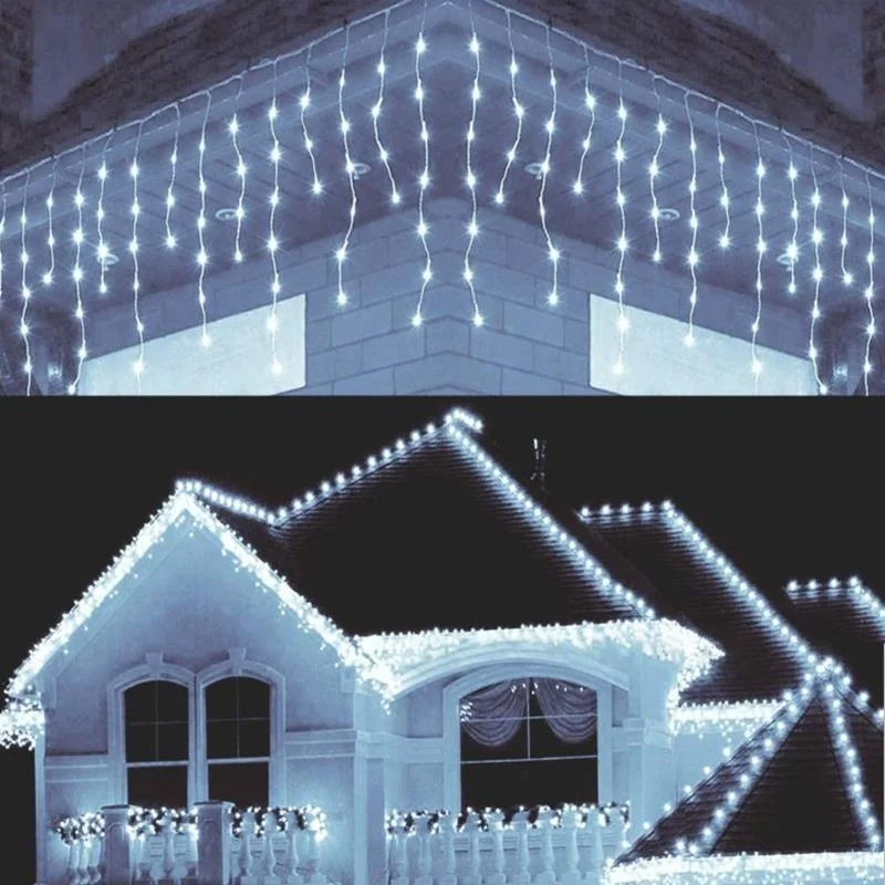 Рождественские украшения, гирлянды, уличная светодиодная гирлянда-занавес в виде сосулек, уличная Гирлянда для дома, зима 220 В, 5 м, свисающая на 0,5-0,7 м