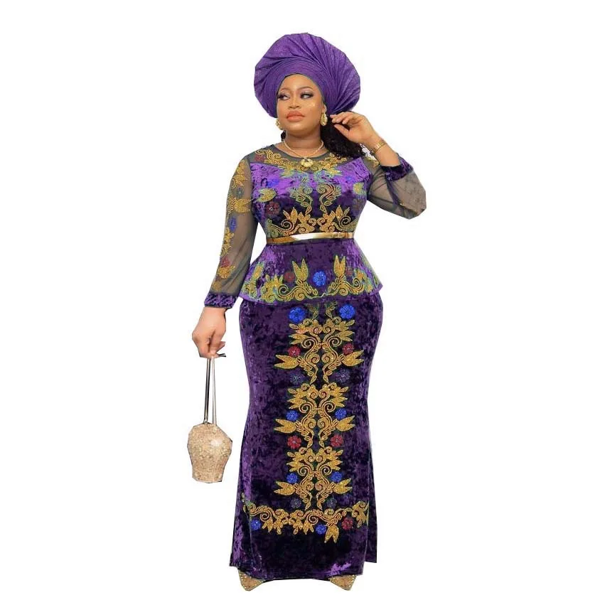 Элегантные Бархатные вечерние платья для женщин, африканские Дашики с вышивкой, длинное платье, нигерийская одежда, кафтан, платье макси, Халат