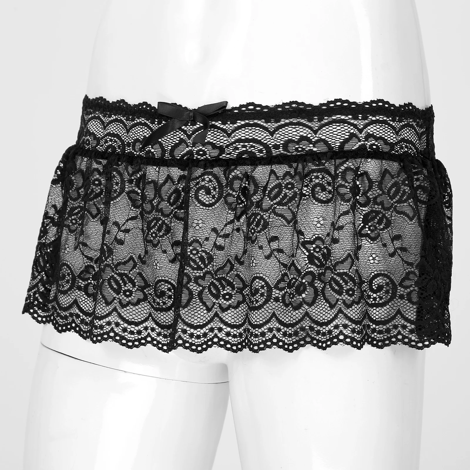 Сексуальные юбки Babydolls для мужчин Прозрачная Кружевная юбка с рюшами нижнее белье Sissy одежда для сна цветочный узор низкая талия черная мини-юбка