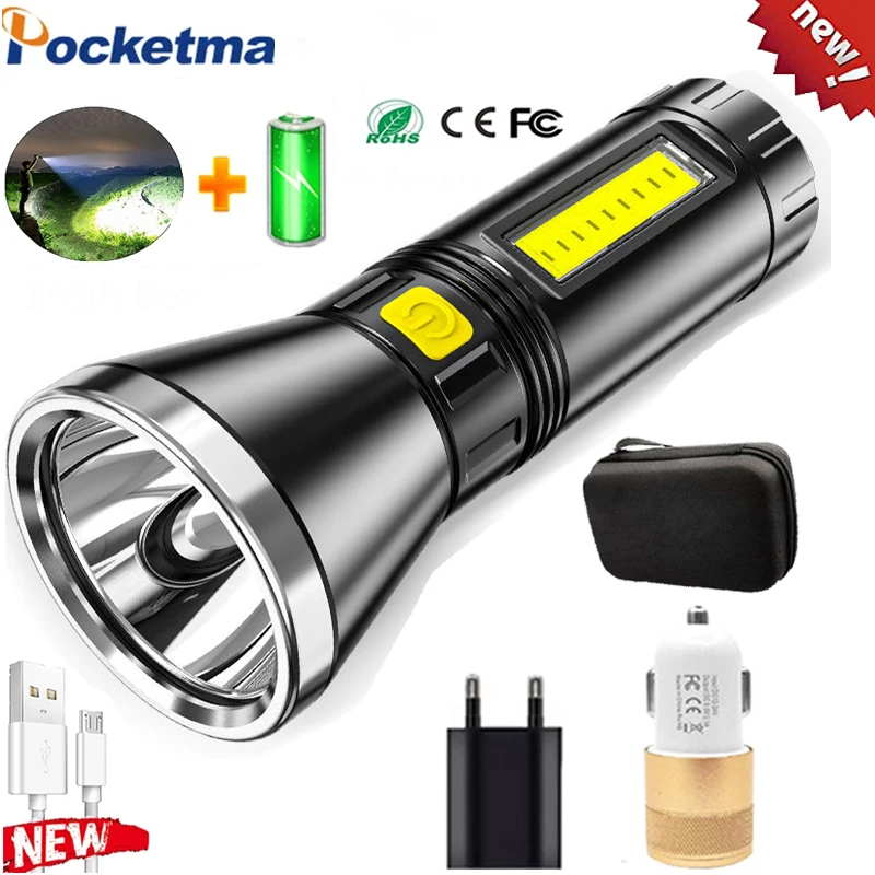 Мощный светодиодный фонарик, USB Перезаряжаемый COB фонарик 500 м, ...
