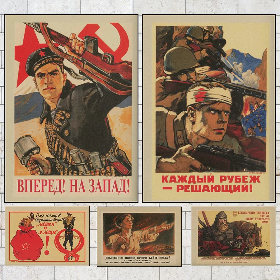 Винтажные постеры из крафт-бумаги времен Второй мировой войны Совет...