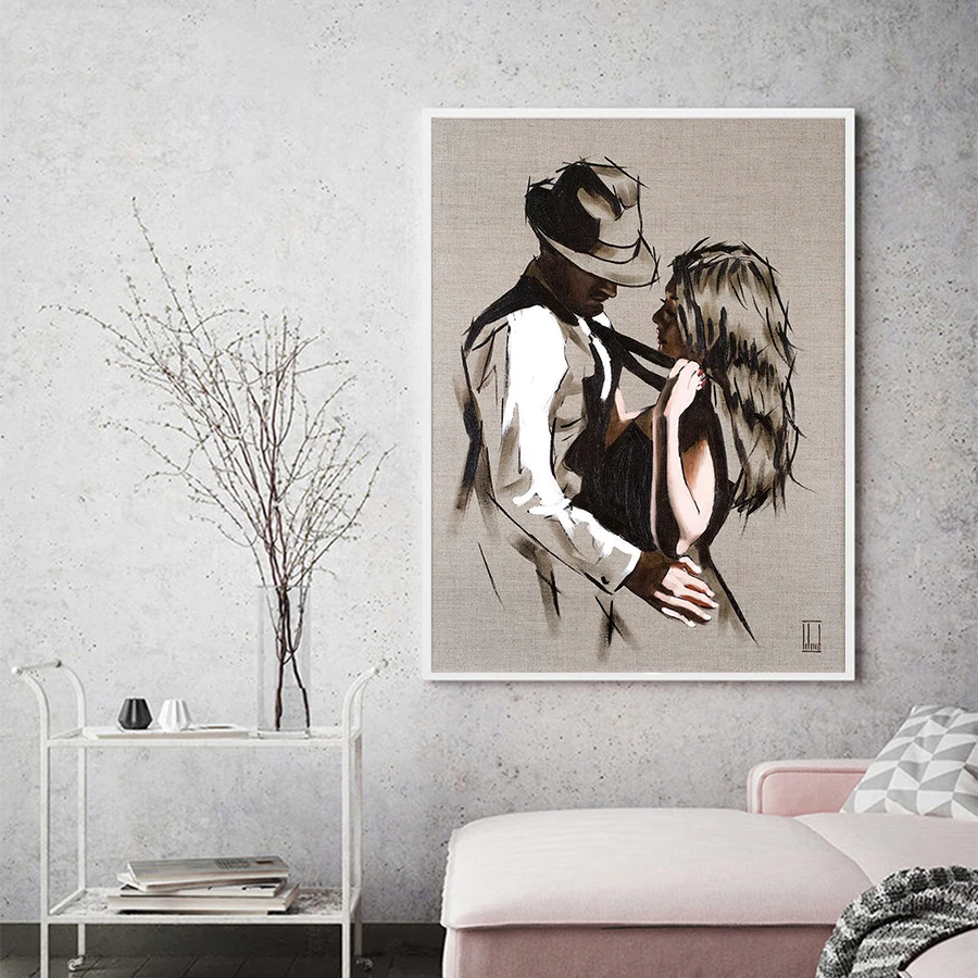 Современная картина для обнимания пар, цветной эскиз в стиле ретро, постер с персонажами, романтический любовник, художественное украшение, Настенная картина