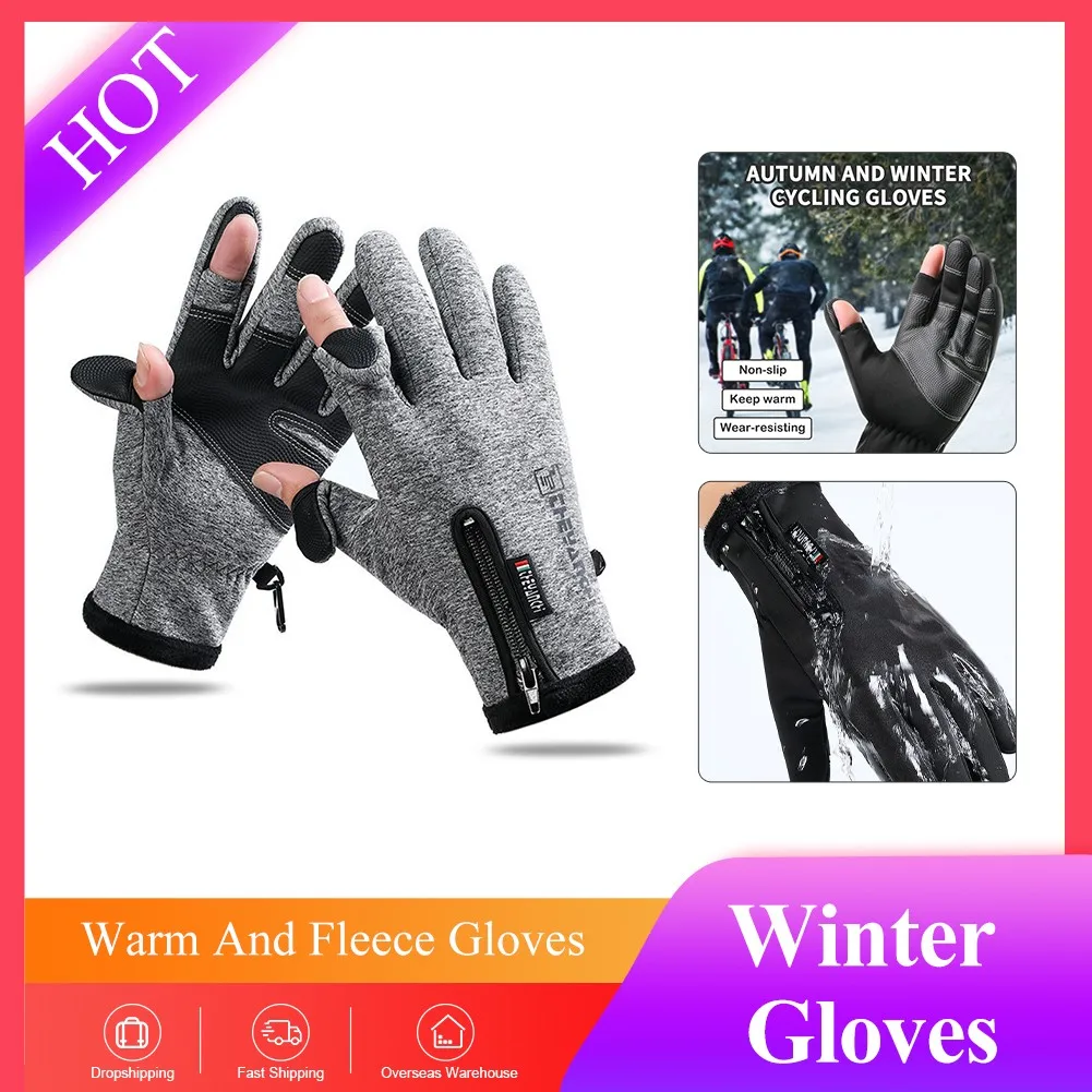 2022 1 пара Зимние перчатки для рыбалки на открытом воздухе Нескользящие водонепроницаемые Нескользящие перчатки с двумя пальцами на запястье эластичные теплые рыболовные перчатки