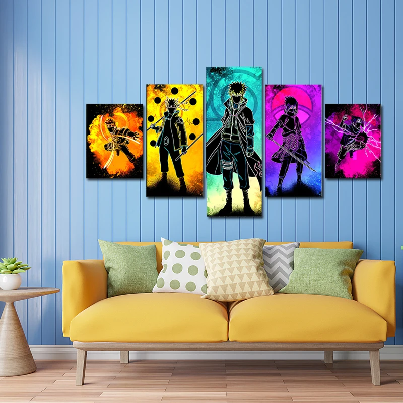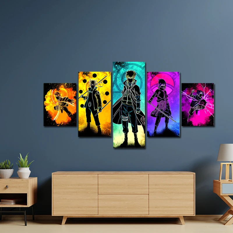 Постеры и принты из аниме Наруто и Саске, 5 шт., Hd Настенная картина на холсте, Модульная картина, рамка для декора спальни мальчика