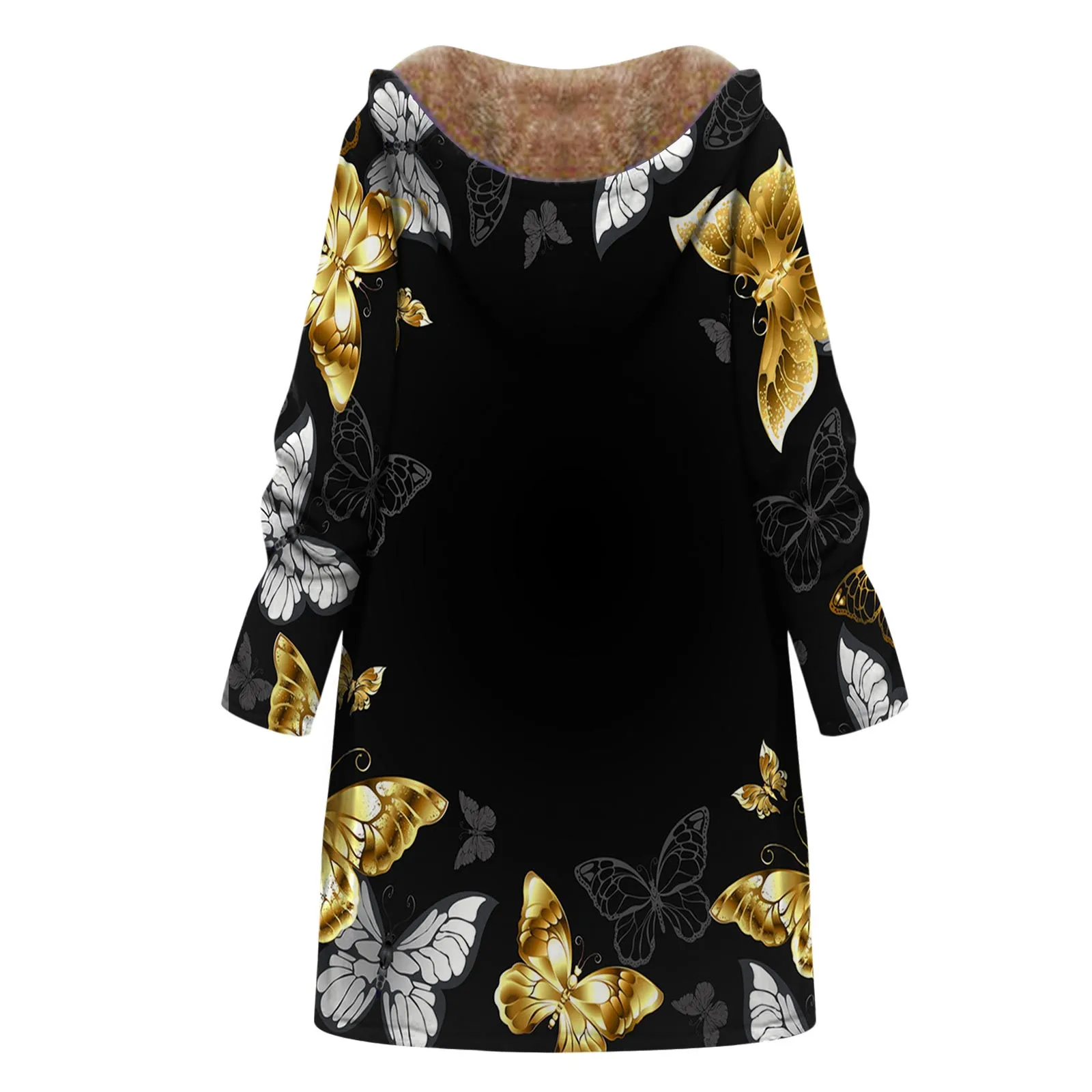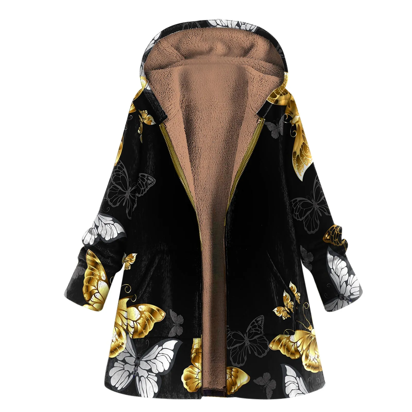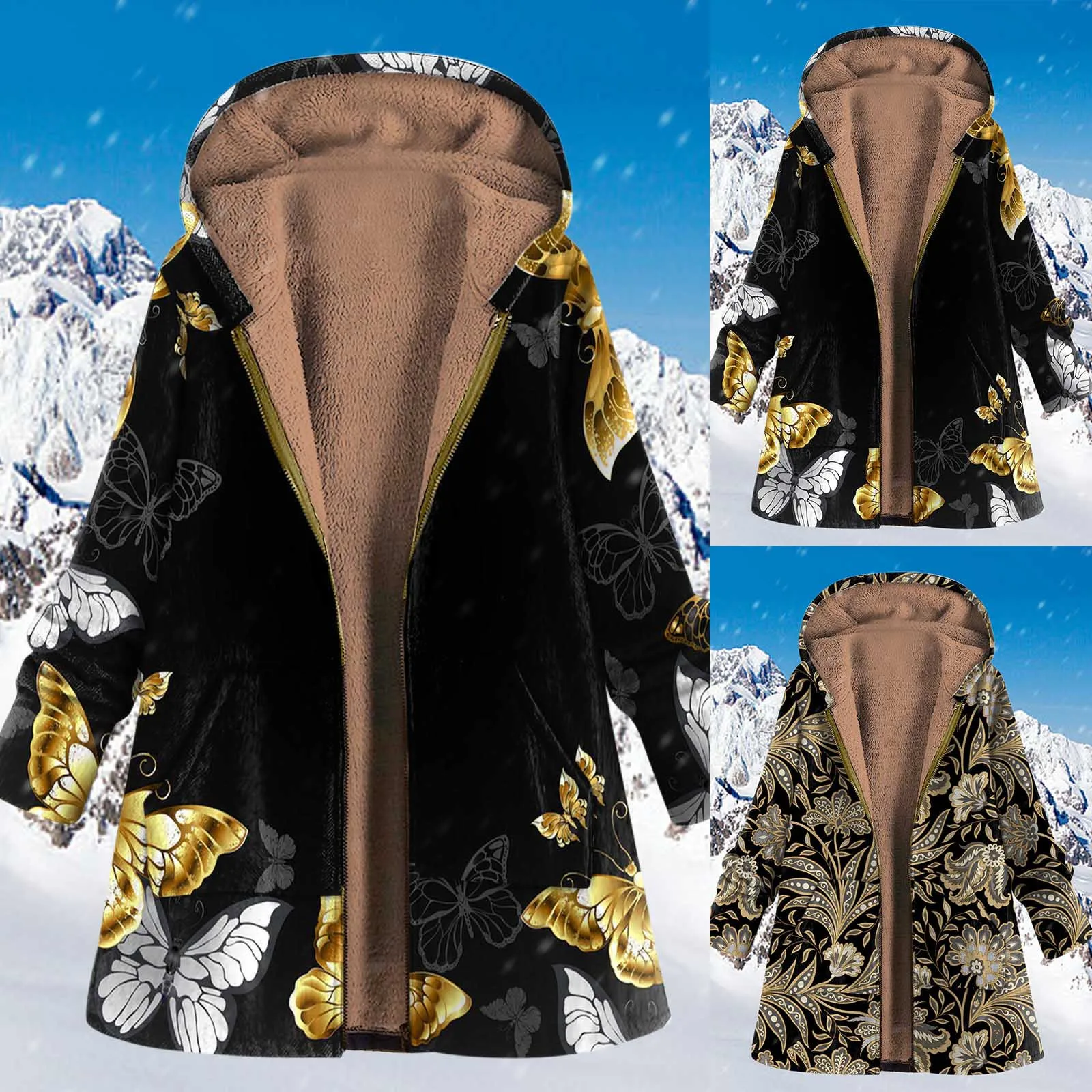 Женская зимняя теплая куртка с длинным рукавом, с цветочным принтом и капюшоном, винтажная пушистая флисовая куртка на молнии, Свободная Женская куртка с карманами, L5