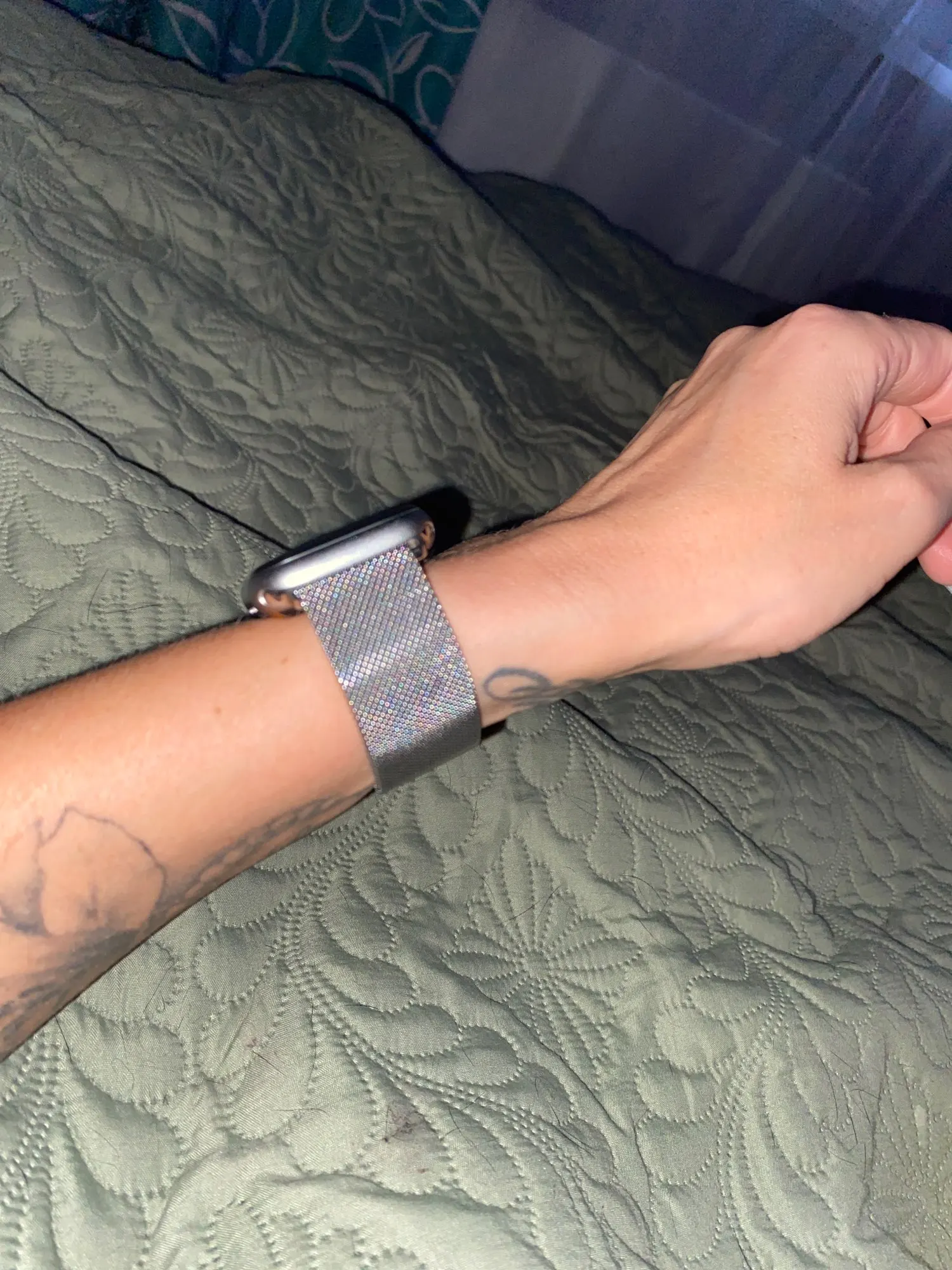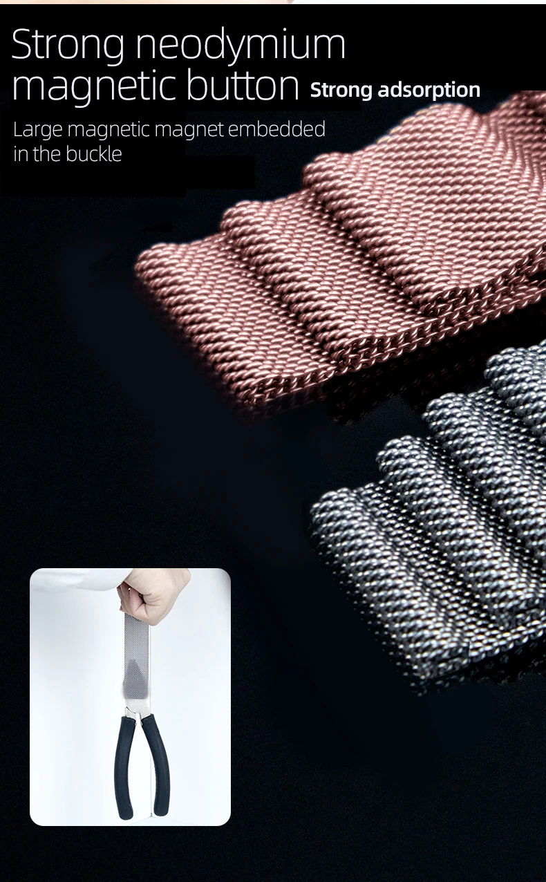 Это очень красиво и хорошо подходит для всех размеров запястья. Легко настроить и настроить его. Он не движется; Магнит достаточно сильный, чтобы держать его на месте до тех пор, пока не отстегнет сам ремешок для регулировки.