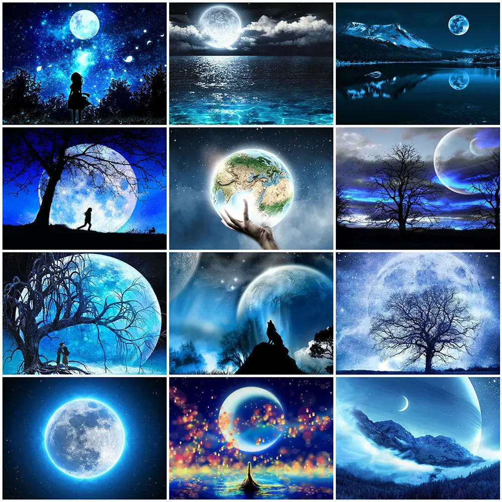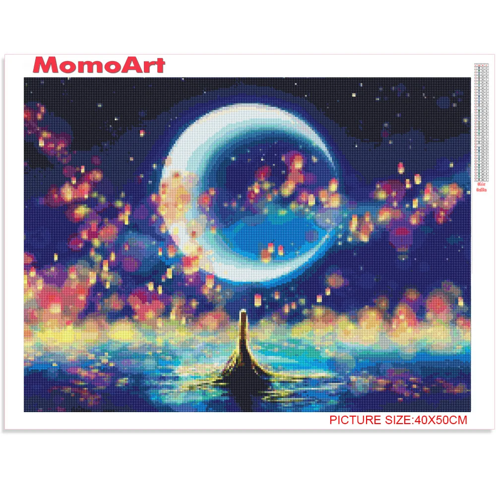MomoArt Алмазная вышивка Луна картина стразы полная площадь Алмазная мозаика Дерево крестом Алмазная Живопись пейзаж декор для дома