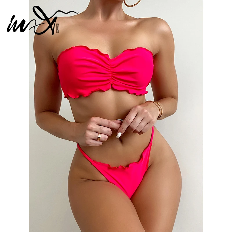 Бикини-бандо In-X, однотонный купальник, женские купальные костюмы без бретелек, купальник, комплект бикини, женские костюмы для купания, mujer 2022