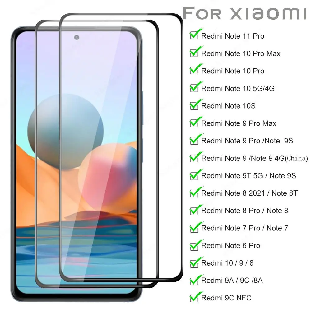 Закаленное стекло для Xiaomi Redmi Note 11 Pro Note 10 9 8 7 6 Pro Max защита экрана Redmi 10 Note 10s 9t 9C NFC 9A 8A 7A 9 8 7