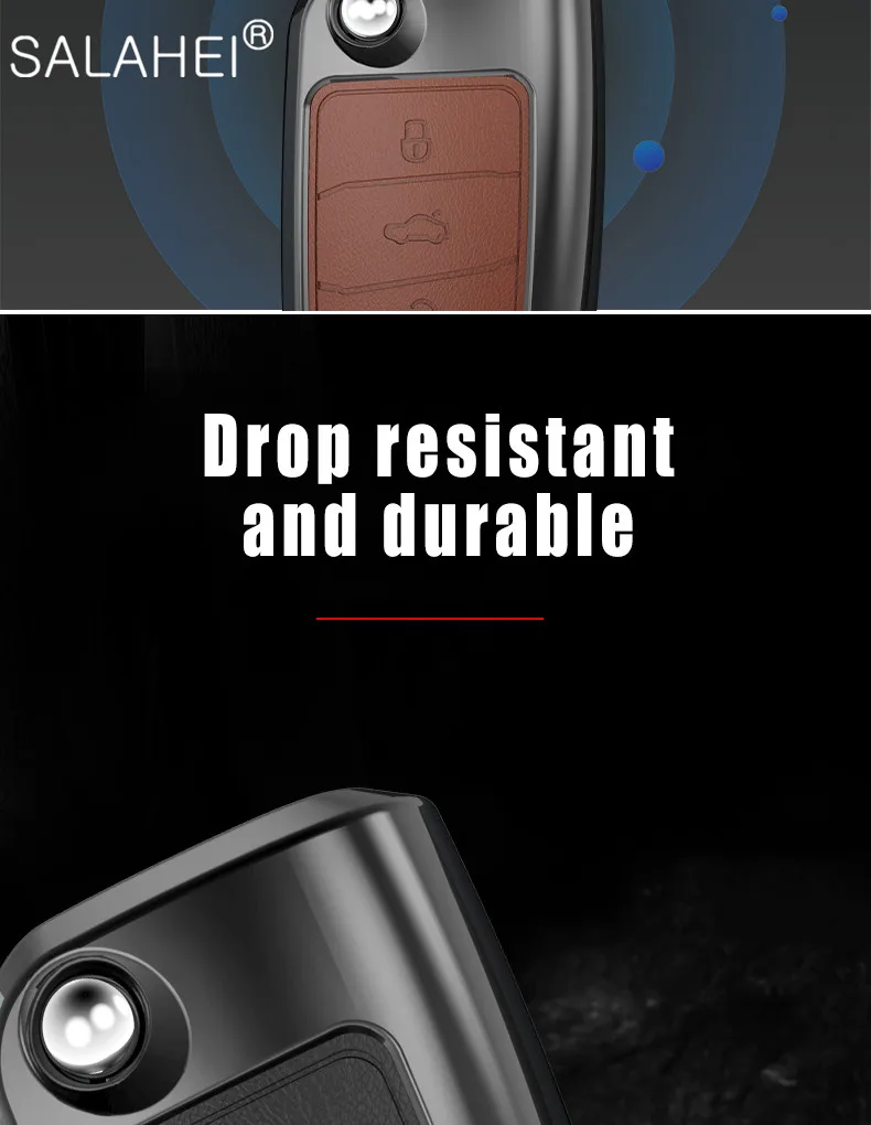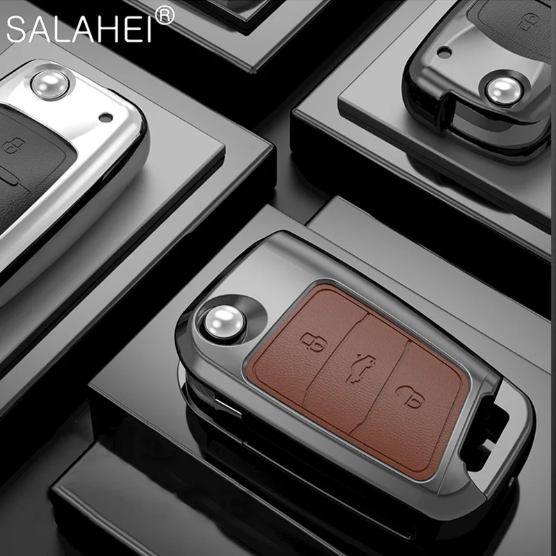 Чехол из цинкового сплава и кожи для автомобильных ключей для Volks...